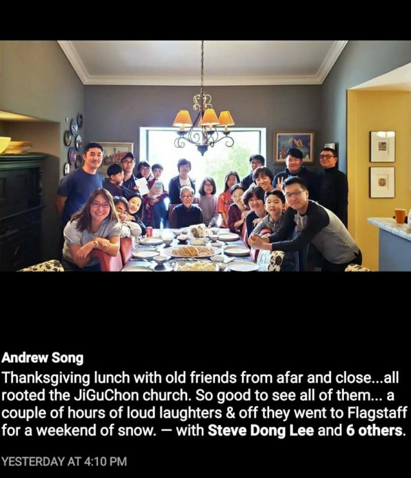 땡스기빙 날 샌디에고로 이사 간 이기영/선덕, 마충운/정아 집사님과 송낙준 집사님 댁에서 점심 먹고 호피 센타로 올라 갔습니다. 눈이 도착한 목요일 오후부터 토요일 아침까지 와서 갖혀 있었습니다. 인터넷이 없는 아날로그 시대로 돌아가 더 많은 시간을 형제, 자매들 아이들과 보낼 수 있어 좋았습니다.