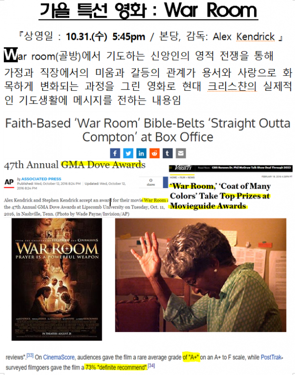 할로윈축제로 물들어가는 10월의 마지막주입니다~ 우리 아이들 뿐만 아니라 우리 자신이 먼저 하나님께 더욱 초점을 두어야 할 때가 아닐까요. 이를 위해 준비한 할렐루야 나이트(10/31/수 오후5~8시30분시)에 많은 참여 부탁드립니다~ 다양한 준비가 되어 있습니다. 함께 하셔서 기쁨과 감사를 함께 나누기로 해요~