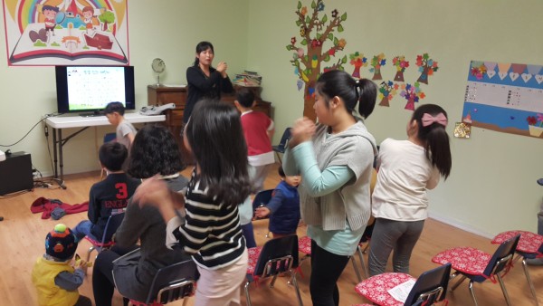 오늘 주일 학교 예배, 찬양 모습입니다.