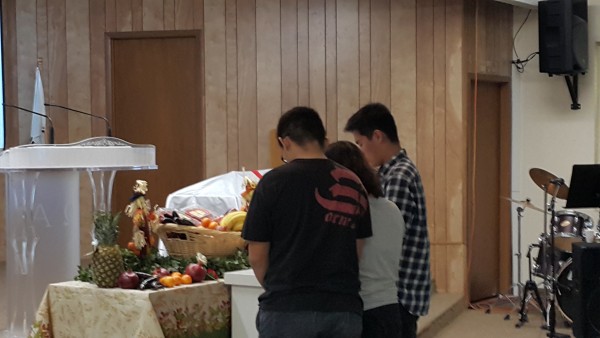 추수감사주일 단체 사진, 음식, 헌금 등을 남김니다.
