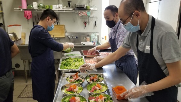 남선교회에서 준비한 회듬뿍 덥밥, 아동부에서 준비한 꽃과 동영상 편지,