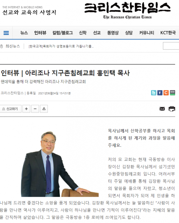 인터뷰 | 아리조나 지구촌침례교회 홍민택 목사