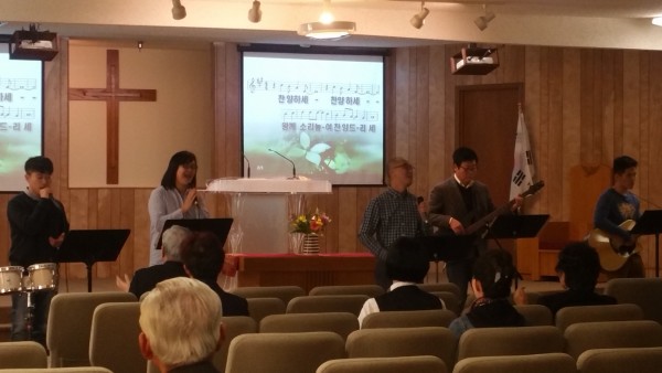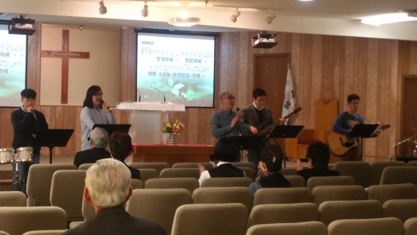오늘 주일 예배 찬양인도팀 모습,