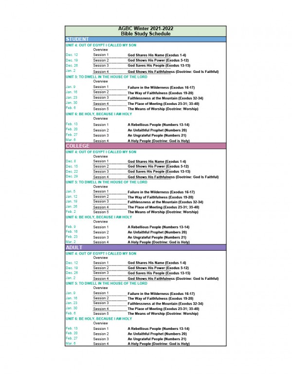 Winter 2021-2022 AGBC EM Bible Study Schedule